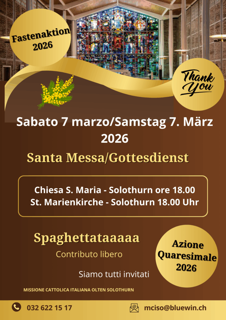 Navigazione articoli Tavolata di marzo – Olten Incontriamo il Silenzio…Progetto Quaresima 2026 – 1° domenica di Quaresima